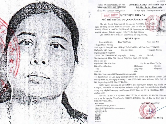 Từ năm 2022, Kim Thị Thảo đã thu tiền của hàng chục người với số tiền lên tới 1,5 tỷ đồng rồi biến mất khỏi nơi cư trú. Công an TP Hà Nội đã phát lệnh truy nã toàn quốc.