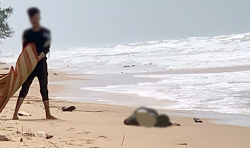 Người dân bàng hoàng phát hiện thi thể nam giới chưa rõ danh tính trôi dạt vào vờ biển thuộc xã Quỳnh Mai, Nghệ An.