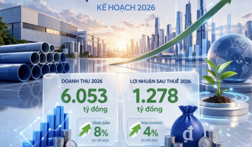 Nhựa Bình Minh đặt mục tiêu doanh thu năm 2026 đạt 6.053 tỷ đồng, tăng gần 8% so với năm 2025; lợi nhuận sau thuế dự kiến đạt 1.278 tỷ đồng.