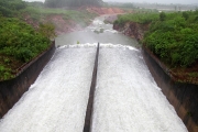 Trước diễn biến mưa lớn tại phía Nam tỉnh Hà Tĩnh, hồ Kẻ Gỗ tiếp tục tăng lưu lượng xả tràn. -