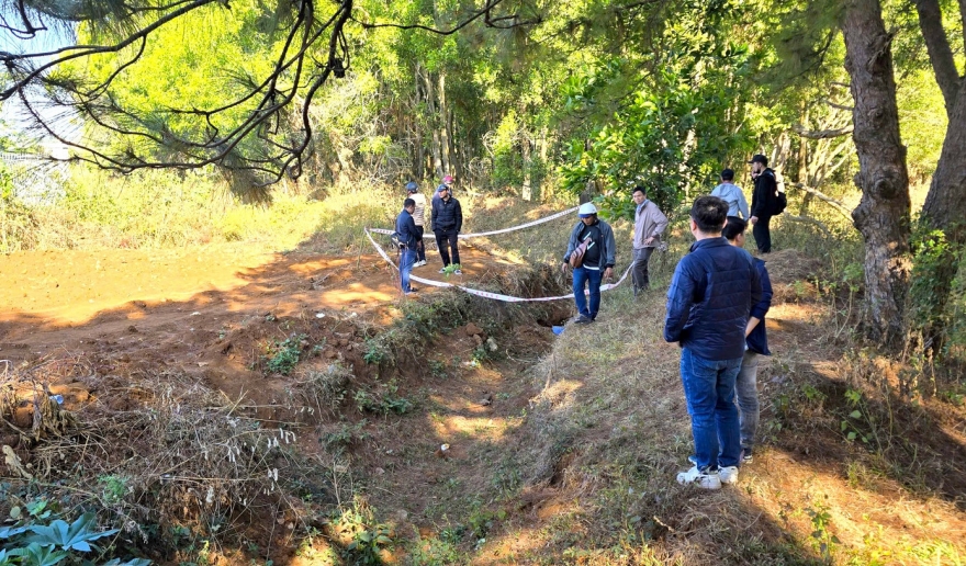 Ngoài chiếc xe máy nghi của 2 đối tượng dùng để cướp ngân hàng được giấu dưới hố sâu ở khu vực rừng thông vắng vẻ, Công an Gia Lai phát hiện gần đó còn có dấu vết đốt quần áo và một số trang bị khác nghi để phi tang