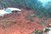 Chiếc ô tô con 7 chỗ bị đất vùi lấp sau khi taluy dương trên đường Hồ Chí Minh sạt lở. Chiếc ô tô con 7 chỗ bị đất vùi lấp sau khi taluy dương trên đường Hồ Chí Minh sạt lở.