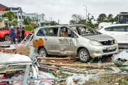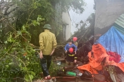 Bão số 10 gây mưa lớn, gió giật ở xã Hoằng Phú (Thanh Hóa) làm nhiều ngôi nhà tốc mái, sập đổ; 4 người trong một gia đình mắc kẹt đã được lực lượng cứu hộ giải cứu an toàn.