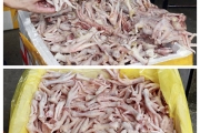 Trong quá trình kiểm tra, tổ công tác phát hiện phương tiện chở số lượng lớn sụn chân gà không rõ nguồn gốc, bốc mùi.