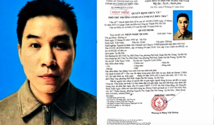 Ngày 8/12, Công an thành phố (TP) Hà Nội cho biết, chính thức tuy tìm đối tượng Trần Ngọc Quang trong nhóm liên quan lừa đảo thu lợi bất chính gần 500 tỷ đồng về tội cho vay nặng lãi.