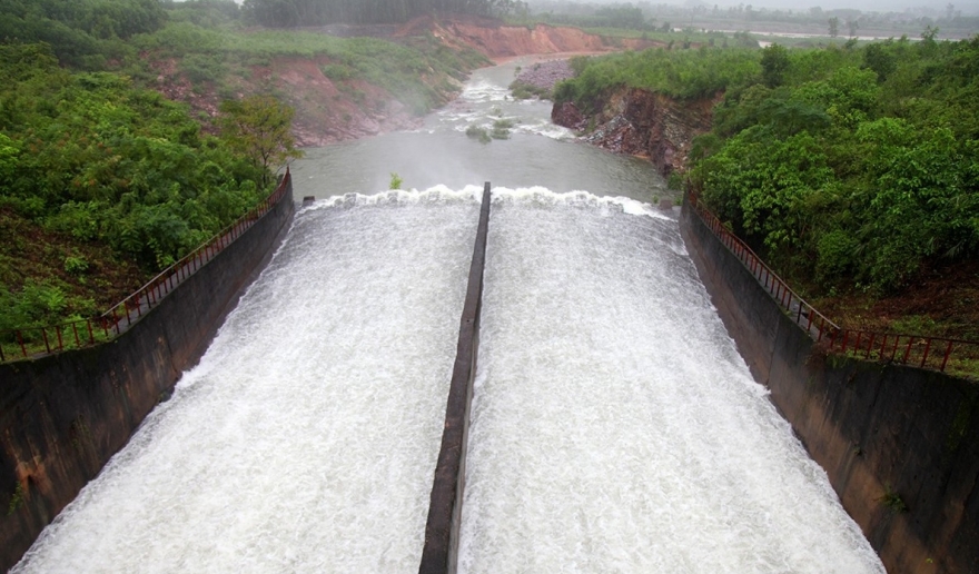 Trước diễn biến mưa lớn tại phía Nam tỉnh Hà Tĩnh, hồ Kẻ Gỗ tiếp tục tăng lưu lượng xả tràn.