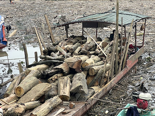 Trong số rác tập trung trên hồ thủy điện Hủa Na, gỗ là loại rác chiếm diện tích mặt nước cũng như số lượng lớn nhất. Gỗ đang được người dân sử dụng các biện pháp kéo vào gần bờ để đưa lên xe chở về các khu vực lân cận tích trữ dùng làm chất đốt.