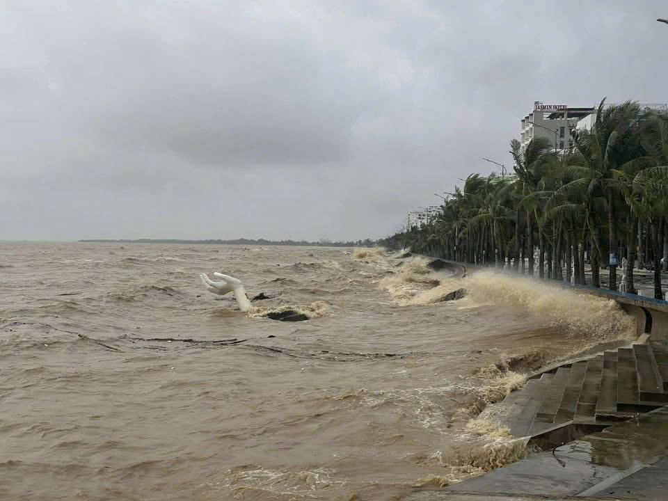 Sóng biển vẫn đánh dữ dội vào bờ kè biển