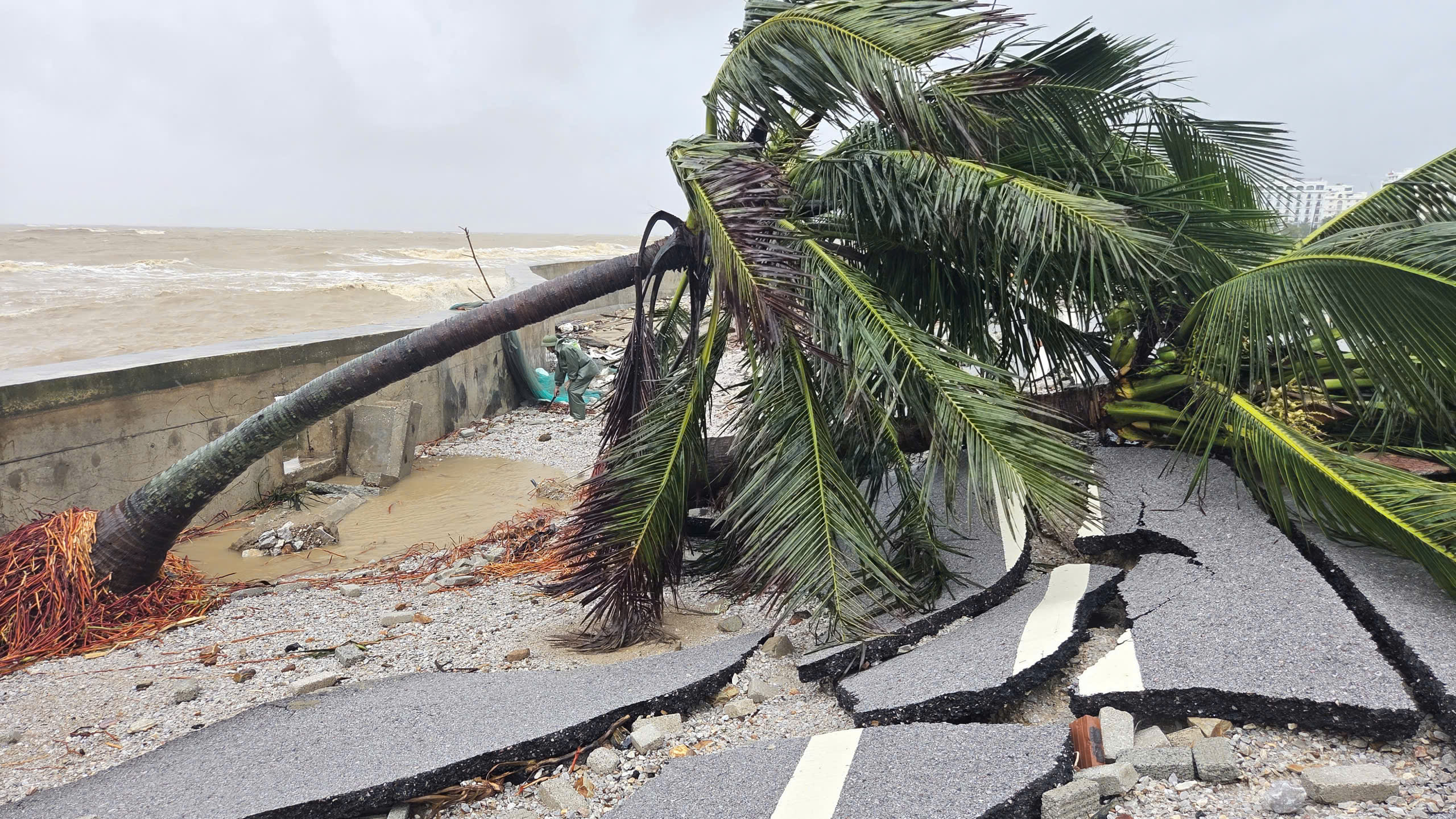 Cây dừa gãy đổ, đường bê tông vỡ nát