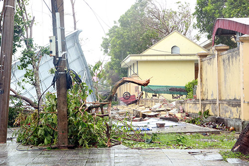 Ngày 29/9, sau khi bị bão số 10 đổ bộ từ đêm 28/9 đến rạng sáng 29/9 với cường độ gió mạnh, nhiều trường học, nhà cửa, cây xanh, …bị tốc mái, ngã đổ ngổn ngang. Điện lưới mất hoàn toàn, sóng điện thoại nhiều nơi không có kết nối.