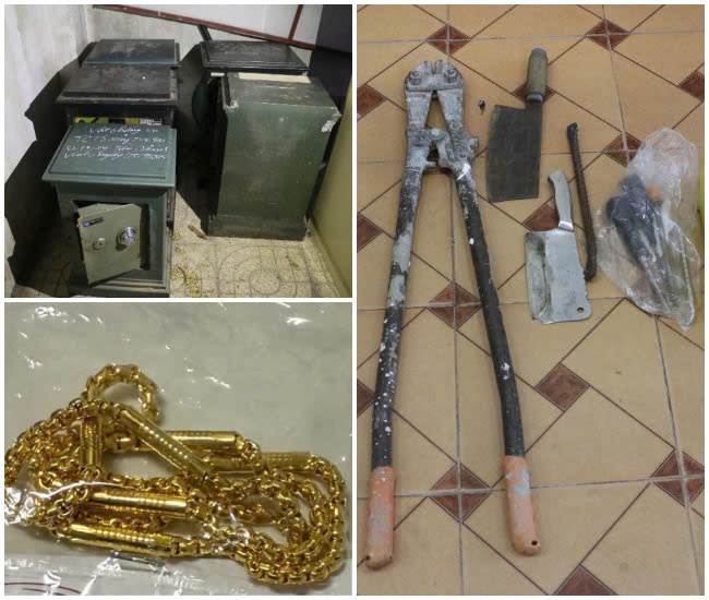 Sau khi bắt giữ, cơ quan công an đã thu giữ 1 dây chuyền vàng (2,252g), 1 mô tô, 1 điện thoại di động, 1 bộ dụng cụ phá cửa – phá khóa cùng nhiều tang vật khác.
