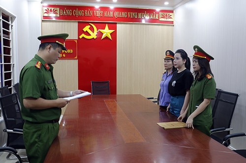 Cơ quan Cảnh sát điều tra Công an tỉnh Nghệ An đọc lệnh khởi tố vụ án, khởi tố bị can và bắt tạm giam đối với Phùng Thị Thu Hiền