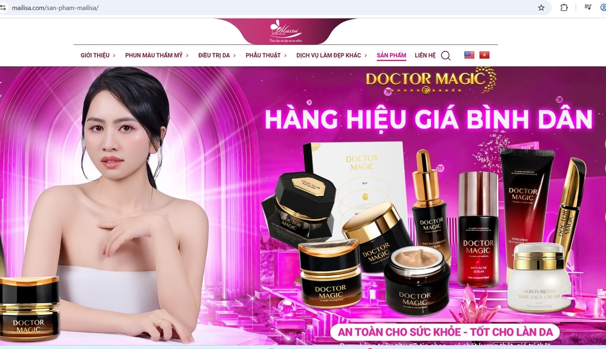 Chuỗi thẩm mỹ viện Mailisa thường xuyên livestream trên các nền tảng mạng xã hội để bán các sản phẩm mỹ phẩm. Toàn bộ danh mục, từ kem dưỡng, sữa rửa mặt, kem chống nắng, phấn nước, tẩy tế bào chết, dung dịch vệ sinh đến mặt nạ… đều mang thương hiệu Doctor Magic, được giới thiệu là nhập khẩu chính hãng và phân phối độc quyền tại Việt Nam.