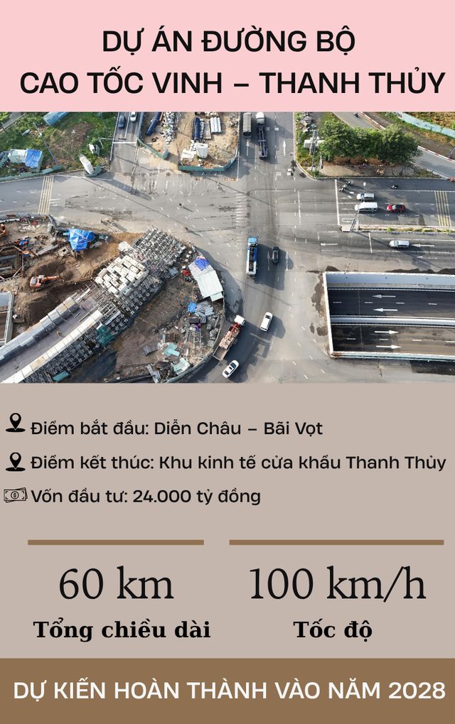 Chính phủ vừa trình Quốc hội báo cáo nghiên cứu tiền khả thi Dự án đường bộ cao tốc Vinh – Thanh Thủy (Nghệ An) với tổng vốn sơ bộ gần 24.000 tỷ đồng. Tuyến cao tốc dài 60km này được kỳ vọng sẽ mở ra hành lang kết nối chiến lược Việt Nam - Lào, góp phần hình thành trục đường bộ cao tốc Đông - Tây. Dự án được đề xuất triển khai theo hình thức đầu tư công.