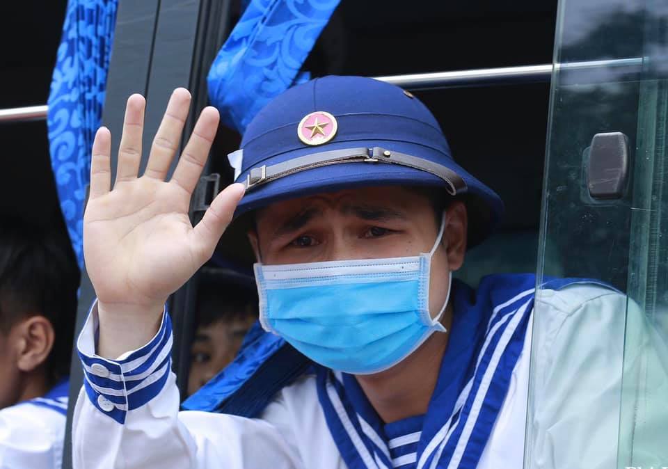 Trong giây phút chia tay các tân binh lên đường phục vụ Tổ quốc, những người thân, bạn bè dù tự hào nhưng vẫn không khỏi xúc động, rơi nước mắt khi trao cho các tân binh những cái ôm, những nụ hôn vội vàng tạm biệt.