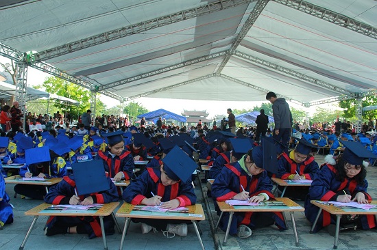 Hơn 500 học sinh giỏi của TP Hải Phòng đã thực hiện nghi lễ khai bút đầu xuân tại Khu tưởng niệm vương triều Mạc.