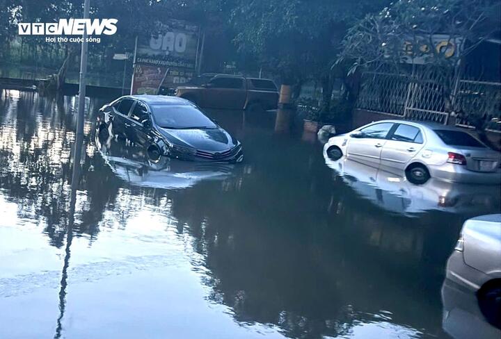 Trong nhiều khu dân cư, triều cường dâng cao khiến ô tô ngập nặng.