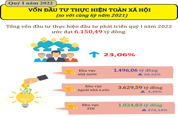 Số liệu vừa công bố của Cục Thống kê Hà Tĩnh cho thấy, tổng vốn đầu tư phát triển quý I/2022 ước đạt 6.150 tỷ đồng, tăng 23,06% so với cùng kỳ năm trước.Trong đó, vốn nhà nước trên địa bàn ước đạt 1.496 tỷ đồng.