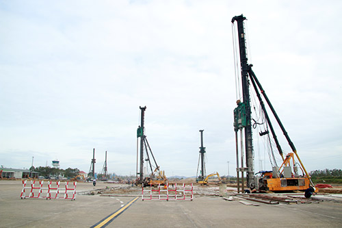 Đại diện Ban Điều hành dự án cho biết, đến thời điểm này, 6 nhà thầu trong dự án đều đạt tiến độ đề ra. Trong đó, hạng mục đường cất hạ cánh đã thi công 2km bê tông 2 lớp, tương đương 80%. Phần còn lại đoạn ngắn đất yếu, các đơn vị đang tập trung gia cố. Đối với sân đỗ, ngay khi được bàn giao mặt bằng, chúng tôi chỉ đạo nhà thầu chuẩn bị sẵn các dây chuyền khoan làm cọc xi măng đất, để đuổi kịp tiến độ các hạng mục khác.