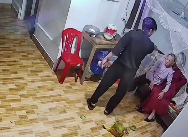 Chưa dừng lại, người này tiếp tục lớn tiếng chửi bới rồi đi ra ngoài, cầm theo dao bầu quay vào nhà, chĩa về phía mẹ và chị gái để đe dọa. Phát hiện camera đang ghi hình, người đàn ông đã dùng dao chém làm hư hỏng thiết bị.
