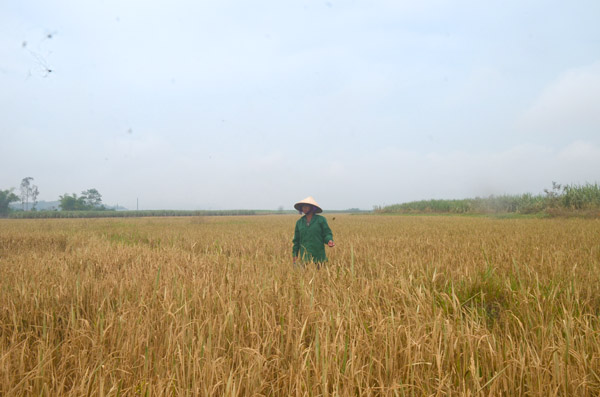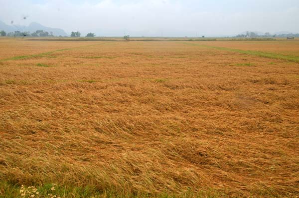 Thực tế trên các cánh đồng dọc sông Con, diện tích lúa chưa được thu hoạch rất nhiều. Các cánh đồng này do ngập chìm trong nước nhiều nên cây lúa có màu vàng, gốc lúa bắt đầu thối, đất bùn bám vào vào. Có những ruộng lúa đổ ngã rạp xuống mặt đất, người dân không mặn mà để thu hoạch đem về nhà.