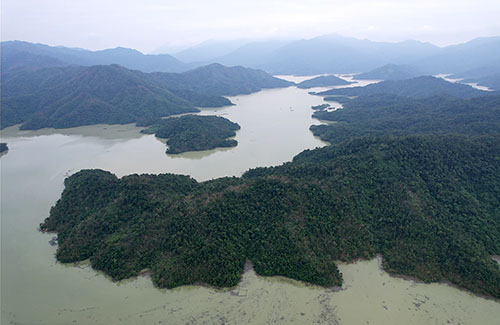 Hồ thủy điện Hủa Na nhìn từ trên cao.