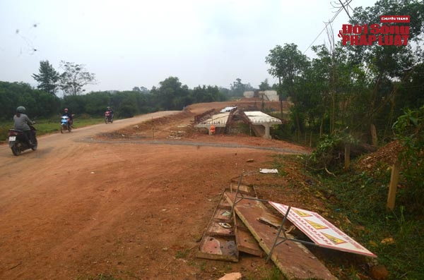 Ngày 16/12, theo ghi nhận của PV, tuyến đường được đổ một lớp đá base mỏng, không thấy máy móc, công nhân thi công trên tuyến đường, hệ thống biển cảnh báo công trường bị đổ ngã mất tác dụng cảnh báo.