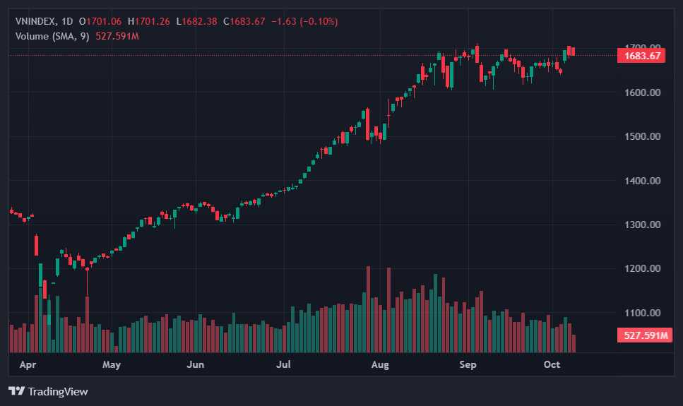 VN-Index phản ứng kém tích cực trước tin nâng hạng. Ảnh: TradingView.