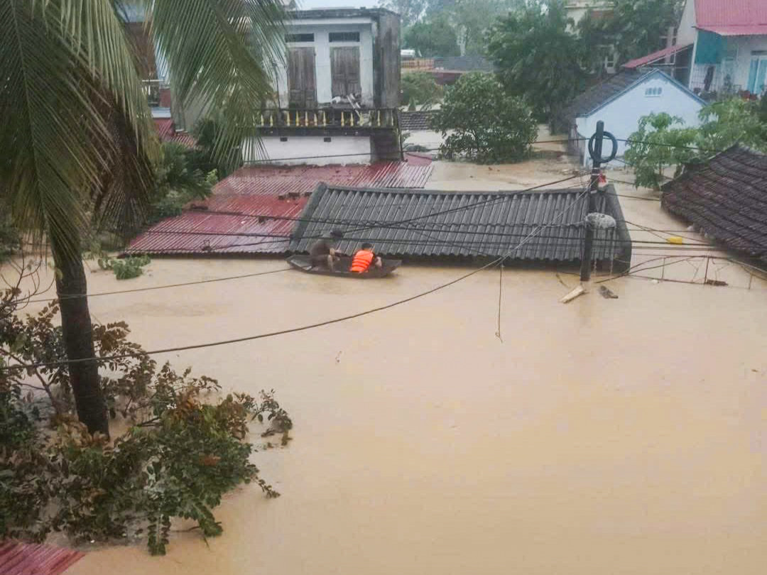 Nhiều hộ dân hiện đang cầm cự trên tầng 2 hoặc mái nhà chờ ứng cứu và tiếp tế lương thực