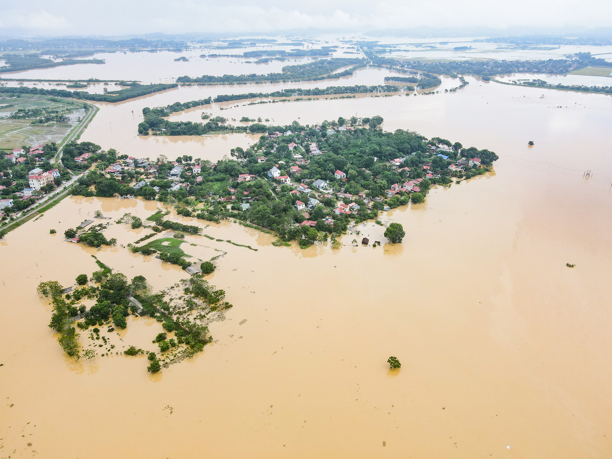 Làng mạc thôn xóm vốn bình yên nay bị nhấn chìm trong lũ dữ