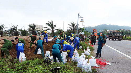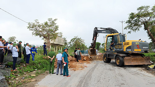 Ngày 1/10, Phó Chủ tịch UBND tỉnh Nghệ An Hoàng Phú Hiền, Giám đốc Sở Xây dựng Phạm Hồng Quang cùng lãnh đạo phường Trường Vinh đã có mặt tại vỡ bờ sông Vinh, trực tiếp chỉ huy công tác vá bờ sông ngăn lũ.
