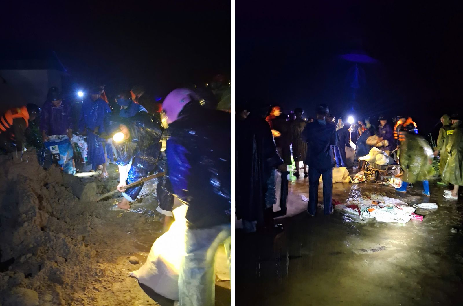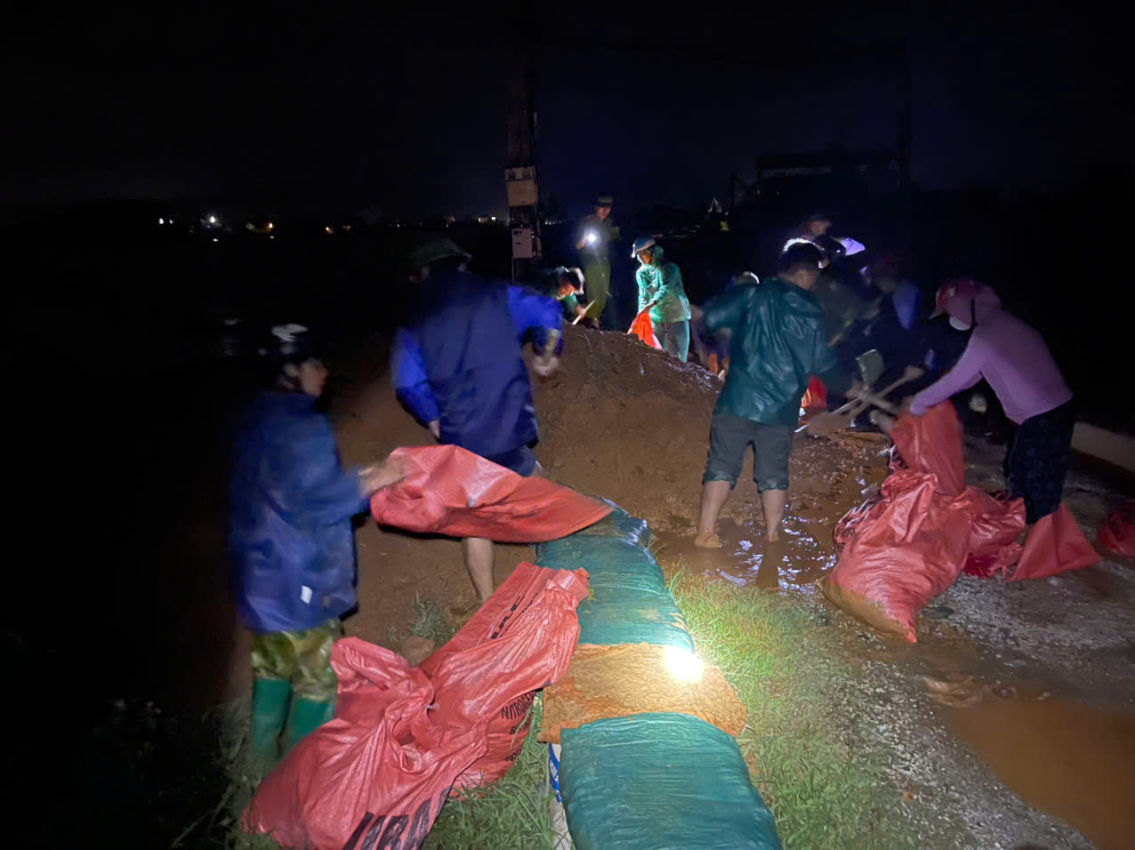 Người dân và lực lượng chức năng cứu hộ đê xuyên đêm