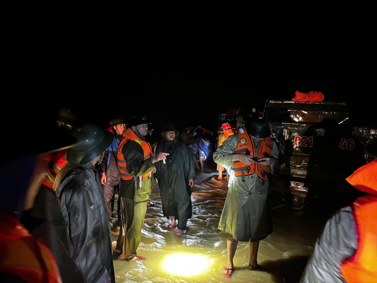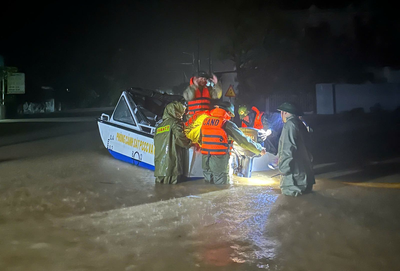 Lực lượng công an cũng xuyên đêm cứu hộ người dân ở các vùng ngập lụt