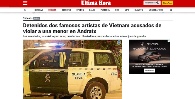 Trang Majorca Daily Bulletin cập nhật thêm thông tin chi tiết vụ hai nghệ sĩ Việt bị bắt tại Tây Ban Nha sau khi bị cô gái 17 tuổi người Anh tố cưỡng hiếp.