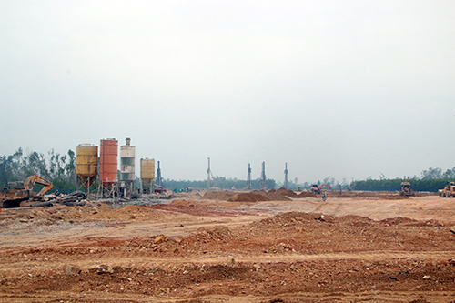 Mặt bằng hạng mục kéo dài đường băng 600m đang được san lấp