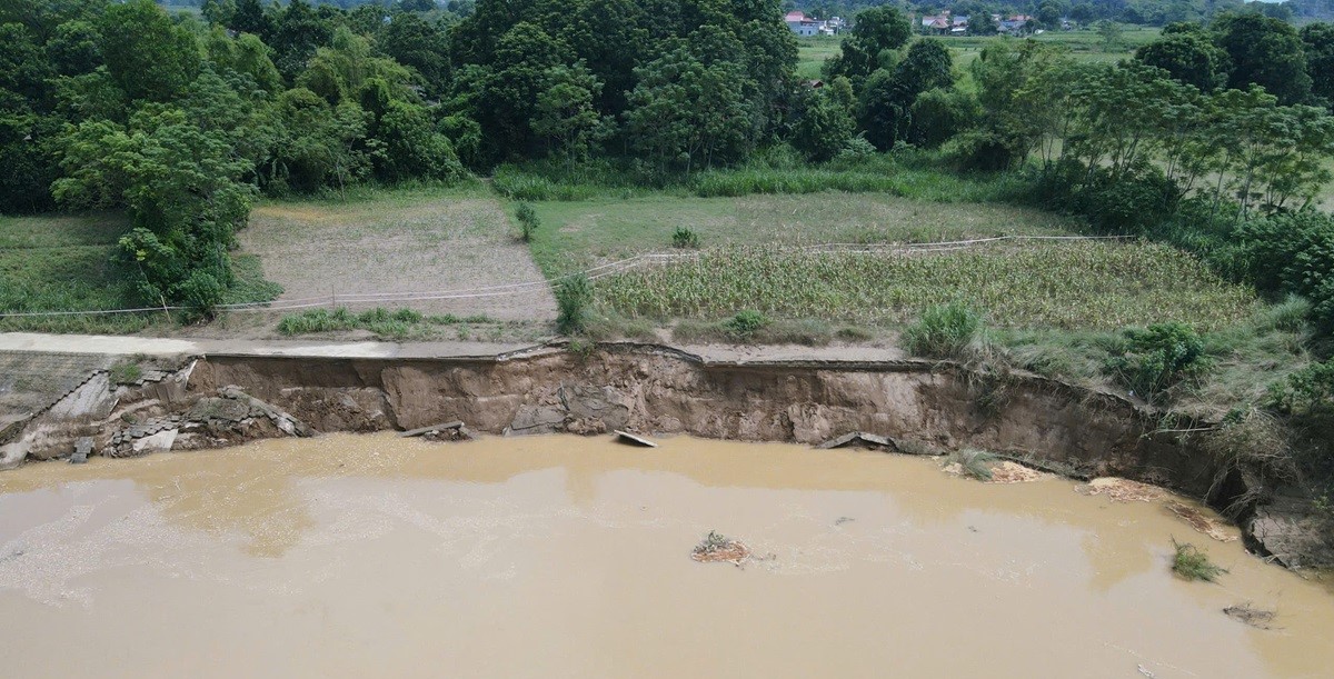 Sau bão số 4, lũ sông Mã dâng cao đã gây hư hỏng và sạt lở bờ kè sông Mã qua huyện Vĩnh Lộc (Thanh Hóa), tiềm ẩn nguy cơ mất an toàn cho khu dân cư.