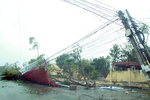Chịu ảnh hưởng trực tiếp của cơn bão số 10, nhiều trường học, cây xanh, cột điện trên địa bàn Nghệ An bị tốc mái, ngã đổ. -