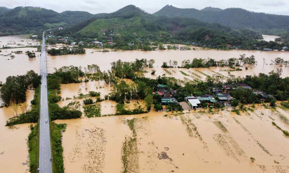 Ảnh hưởng của cơn bão số 10, nhiều khu vực miền núi Nghệ An bị ngập và chia cắt do nước dâng cao và sạt lở núi. -