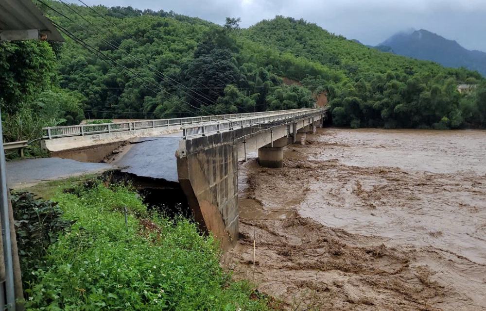 Ảnh hưởng bão số 10 gây mưa lớn liên tục từ rạng sáng 29/9, nhiều tuyến đường và cầu tại Thanh Hóa hư hỏng, chia cắt giao thông.