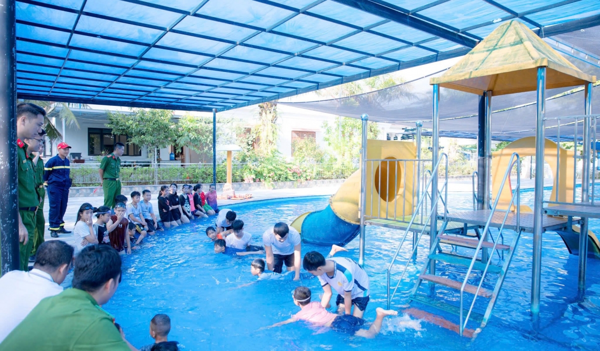 Công an xã Hương Sơn, tỉnh Hà Tĩnh đã tổ chức lớp dạy bơi miễn phí cho các em học sinh trên địa bàn xã.