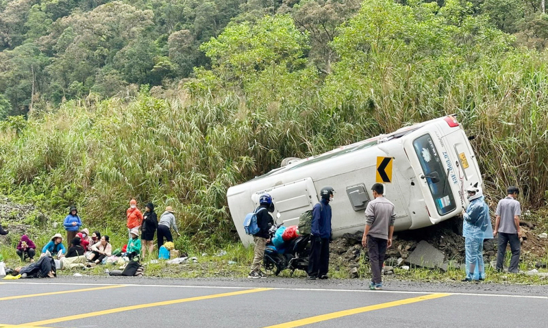 Sáng nay (31/3), xe khách mang biển số thành phố Đà Nẵng, chở theo 25 người bị lật trên quốc lộ 27C đoạn qua đèo Khánh Lê, tỉnh Khánh Hòa làm bị thương 6 người. -