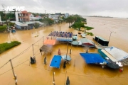 Sáng sớm nay, mực nước sông Thu Bồn (Đà Nẵng) tại trạm Câu Lâu đạt 5,62m, vượt mức đỉnh lịch sử 5,48m ghi nhận năm 1964, trong khi lũ trên sông Hương đang xuống dần. -
