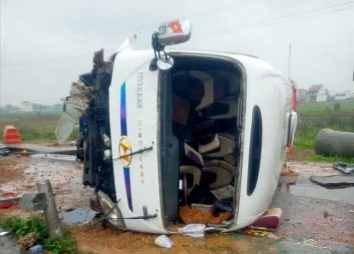 Vụ tai nạn xảy ra trên tuyến cao tốc Nghi Sơn - Diễn Châu, đoạn qua xã Diễn Quảng, huyện Diễn Châu (Nghệ An) khiến 2 giáo viên bị thương; các học sinh may mắn không gặp nguy hiểm.