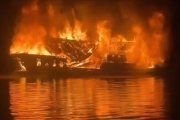 Chiều tối 27/2, tại khu vực gần Hang Cỏ trên vịnh Hạ Long, tàu du lịch Signature QN-7269 bốc cháy dữ dội, may mắn 41 người trên tàu thoát nạn. -
